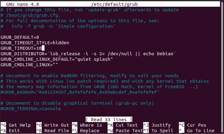 그리고 다음과 같이 grub를 업데이트 한 후, 재부팅하면 설정값이 적용됩니다.