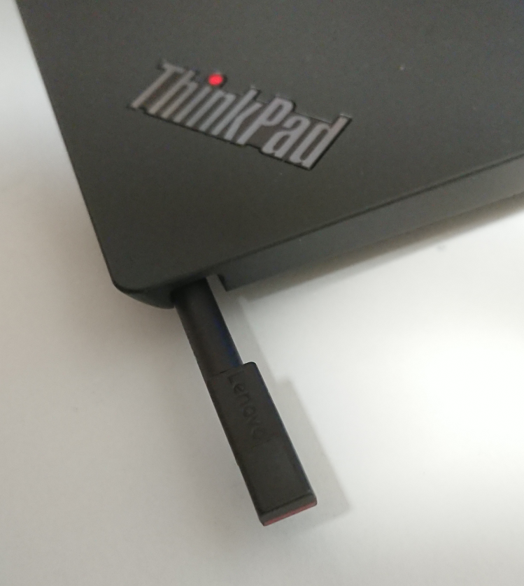 씽크패드 빌트인 펜 상품정보에는 다음과 같이 배터리?로 나와 있는데 아무리봐도 배터리를 넣을만한 크기는 아니고 끝부분에 두 개의 단자가 있는 것으로 보아 내부 배터리를 충전하는 용도로 보인다.