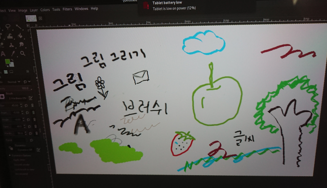 gimp 프로그램으로 내장펜을 테스트해보았다. gimp는 사용법이 익숙하지 않아 허접하다.