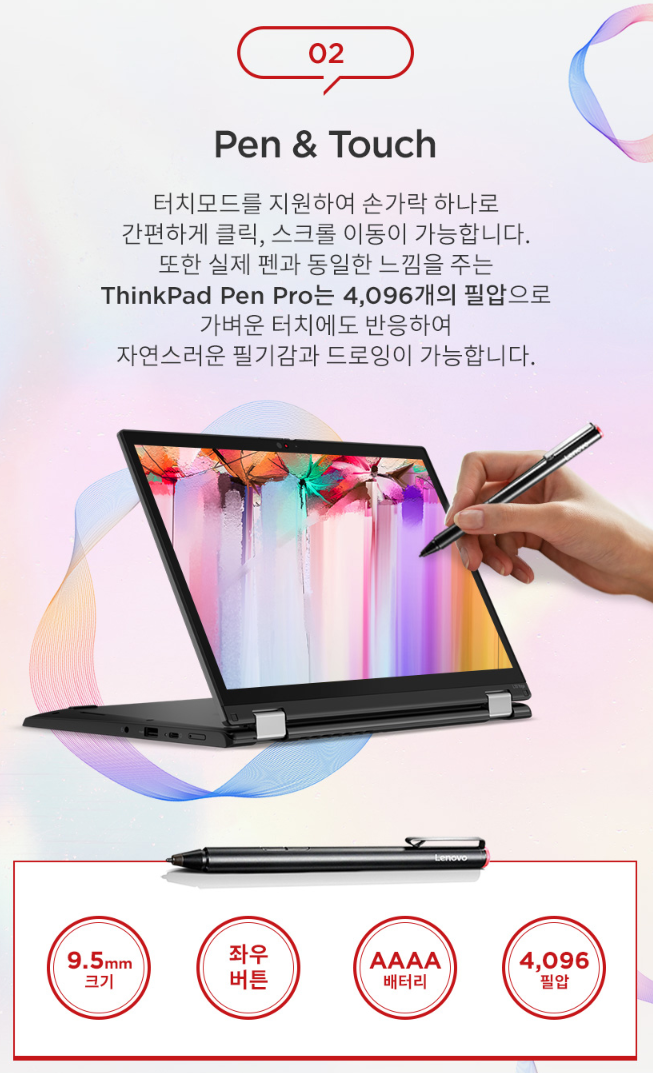 씽크패드 L13 Yoga Gen3 21BB002RKD (SSD 256GB) 상품정보 일부화면 칼리리눅스를 깔고 펜과 함께 찍은 사진이다.